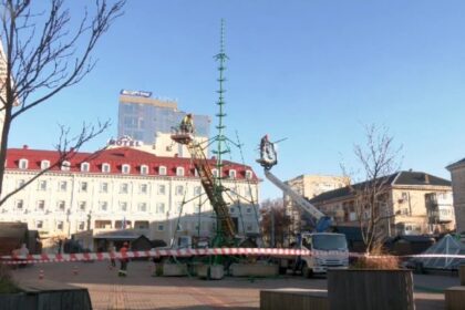 У Рівному встановлюють одразу кілька новорічних ялинок
