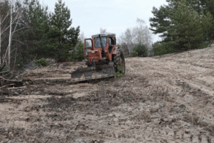 У громаді на Рівненщині трактором прибирали стихійне сміттєзвалище
