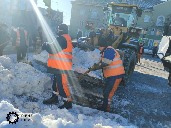 Зранку комунальники займаються вивезенням снігу з вулиць Рівного.