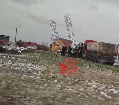 При виїзді у Сарни вантажівка протаранила в’їзне кільце.