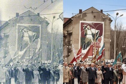 На стіні будинку біля ЦУМу колись висів радянський «мурал»
