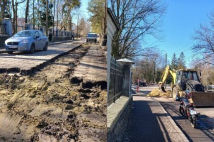 У Рівному біля обласного краєзнавчого музею тимчасово демонтували бруківку через будівельні роботи.