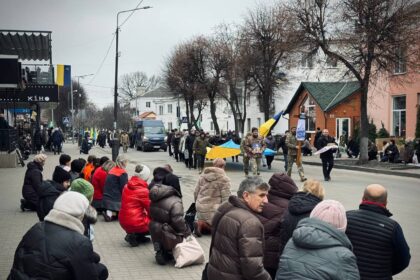 Костопіль став навколішки перед загиблим оператором БпЛА