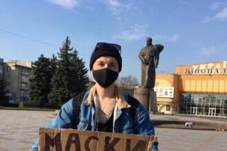 На майдані Незалежності у Рівному провели «захисну акцію». Парубок роздавав перехожим захисні маски.…