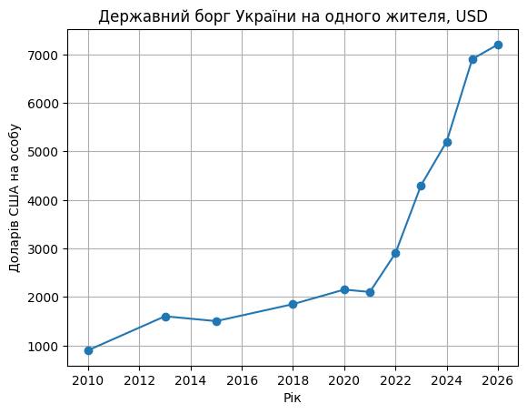 Станом на 2025–2026 роки цей рівень означає, що борг на одного жителя дорівнює приблизно 1,2–1,3 річної зарплати. Іншими словами, середньому українцю потрібно більше року роботи, щоб умовно покрити свою частку державного боргу.