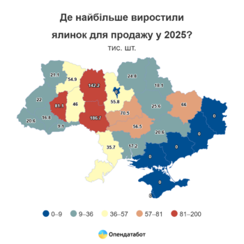 За даними Держлісагентства, у 2025 році в Україні для реалізації заготовили 991 тисячу новорічних дерев, що на 8% менше, ніж торік. Водночас станом на середину грудня було продано лише 39,9 тисячі ялинок, що на 11% менше порівняно з аналогічним періодом 2024 року.