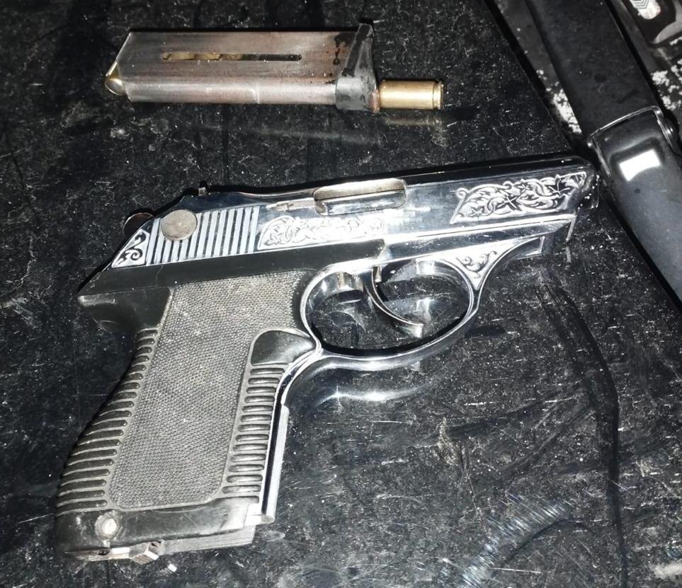 Крім того, під час огляду багажного відділення службова собака Дора знайшла у речах чоловіка предмет, схожий на пістолет під патрони Флобера з набоями, а також речовину сіро-зеленого кольору рослинного походження, схожу на наркотичну.