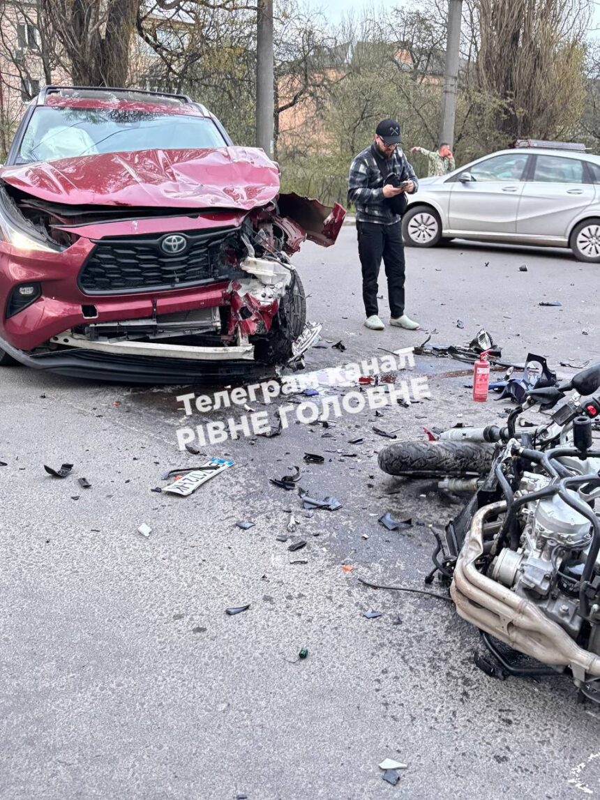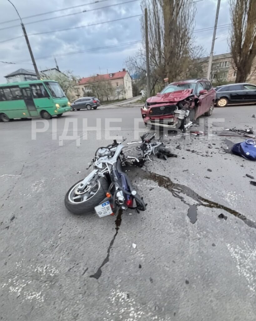 Рівному на перехресті вулиць Соборної та Князя Острозького сьогодні увечері  сталася дорожньо-транспортна пригода за участі мотоцикліста.