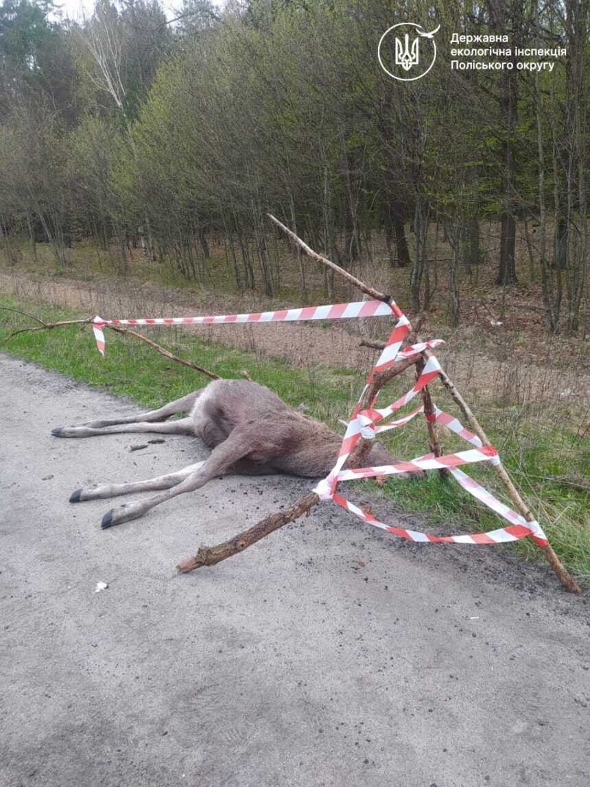 – Унаслідок дорожньо-транспортної пригоди загинула молода самка лося європейського віком до одного року, орієнтовною вагою близько 200 кг. Зафіксовано, що смерть тварини настала миттєво внаслідок травм, несумісних із життям, – повідомили у Держекоінспекції Поліського округу.