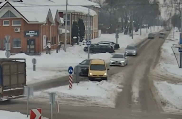 На кадрах видно, як у різних мікрорайонах міста зіштовхуються автомобілі. Переважно ДТП відбувалися на перехрестях. Водіїв закликали бути обережними.