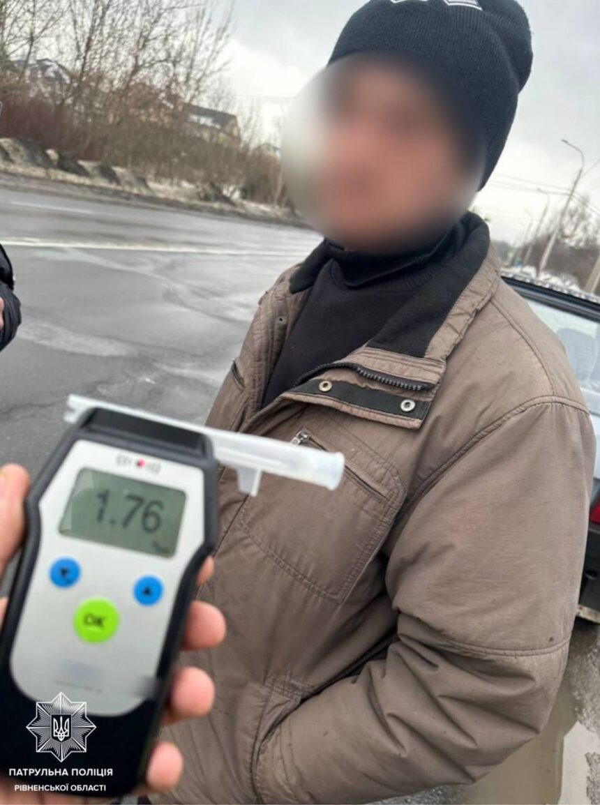 Результат огляду — 1,76 % проміле, – кажуть у патрульній поліції Рівненщини.