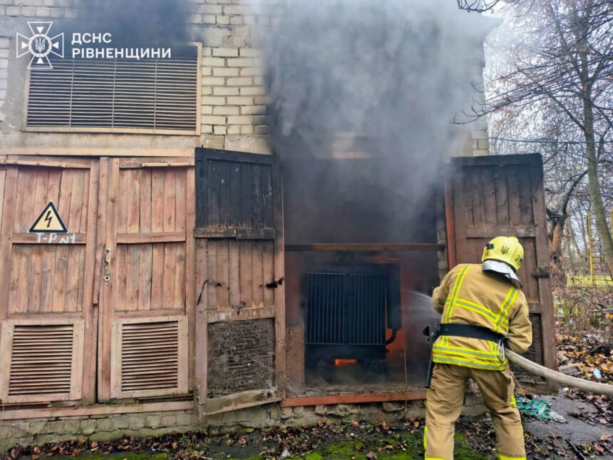 – До ліквідації пожежі залучили два чергових відділення вогнеборців.  Електрики відключили живлення  трансформатора, після чого рятувальники оперативно ліквідували пожежу. Ніхто не постраждав. Причина пожежі встановлюється, – коротко повідомили у ГУ ДСНС Рівненщини.
