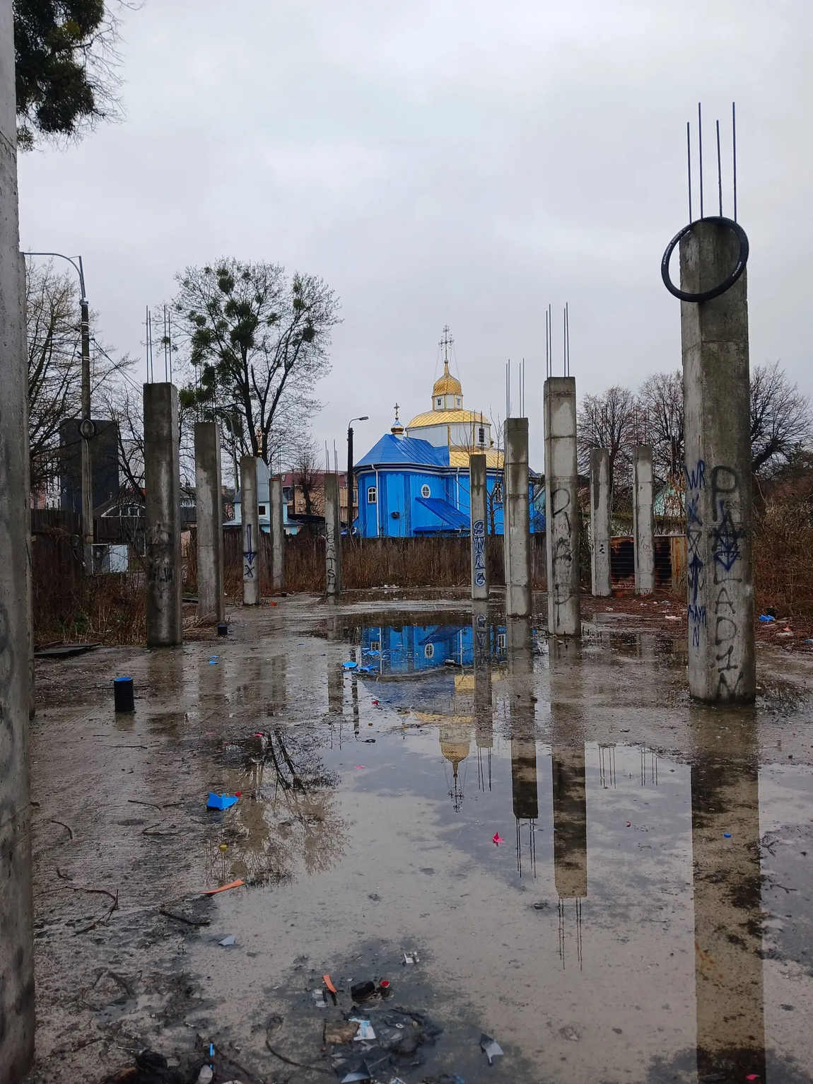 «І це охоронна зона найстарішої пам’ятки сакральної архітектури Рівного — Свято-Успенської церкви, якій цьогоріч виповнюється 270 років. Бетон. Стовпи. Смітник», — привернула увагу до проблеми в соцмережах відома рівненська краєзнавиця Галина Данильчук.
