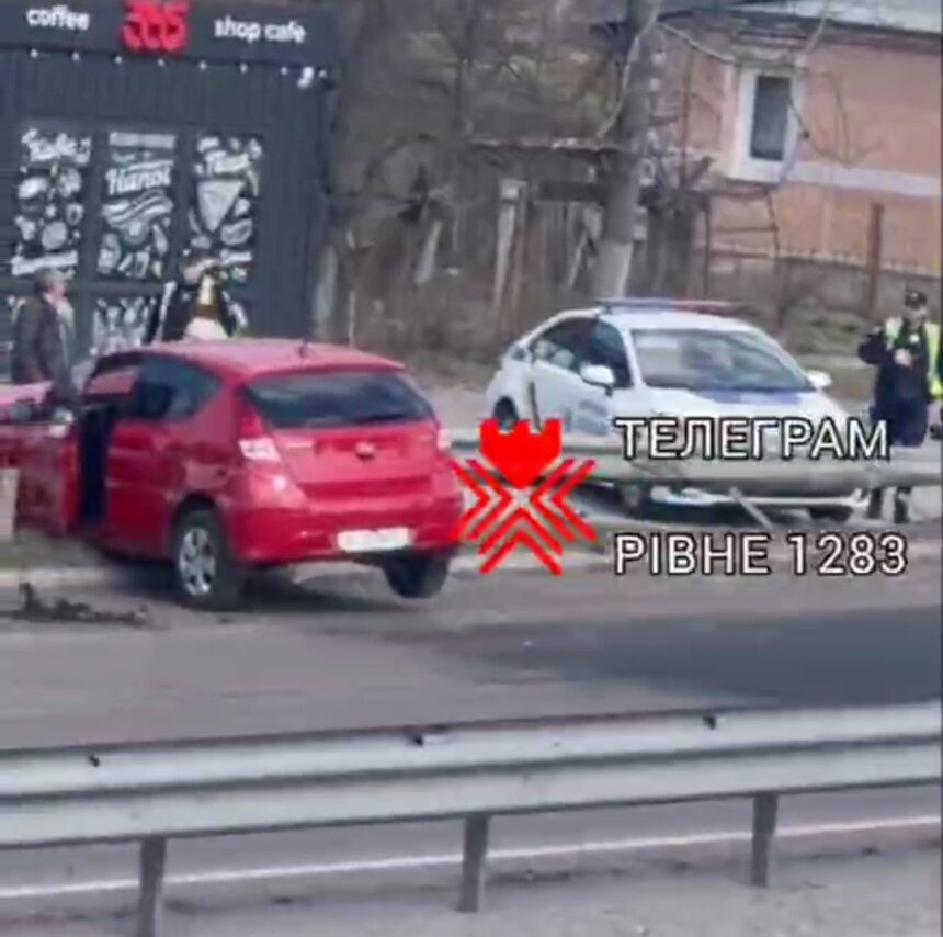 У селі Біла Криниця, що поблизу Рівного, на трасі “Київ-Чоп” сьогодні трапилася ДТП. Очевидці повідомляють, що поблизу кав`ярні автомобіль злетів з проїжджої частини дороги і врізався у відбійник. На відео, яке оприлюднили «Рівне 1283» видно, що авто зазнало значних механічних ушкоджень.