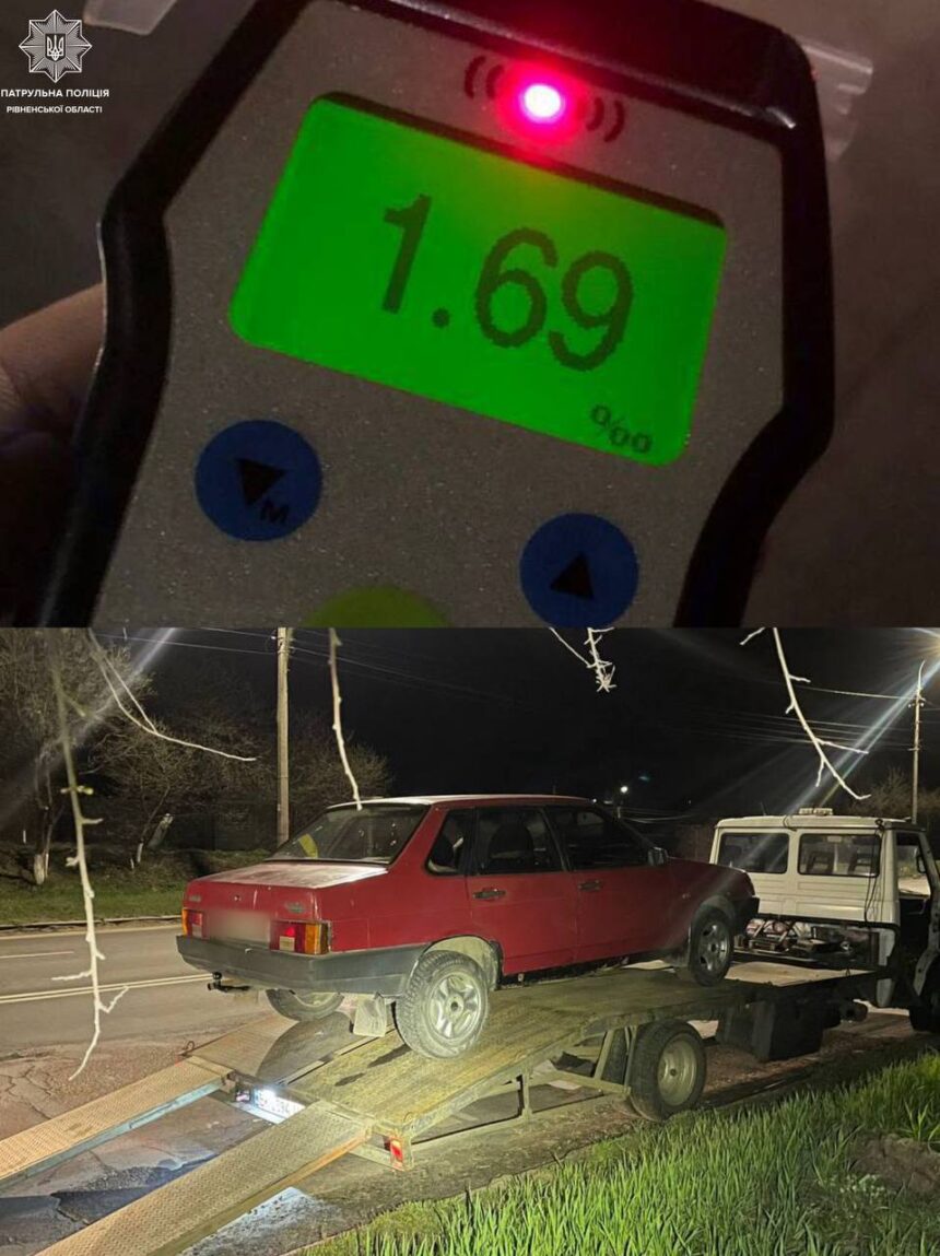 Днями на вулиці Дубенській патрульні зупинили 43-річного водія автомобіля ВАЗ. У того були ознаки алкогольного сп’яніння. Алкотестер це підтвердив: 1,69 проміле. Тож на водія склали протокол.