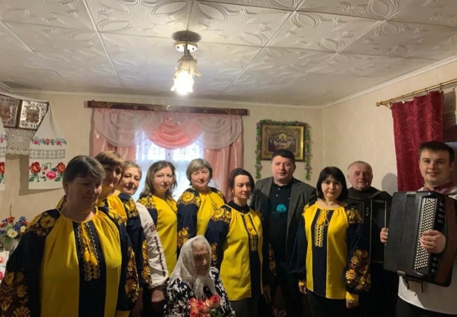 Щоб привітати ювілярку, до її будинку завітав цілий колектив – вокальний ансамбль “Калинове гроно” з місцевого будинку культури.