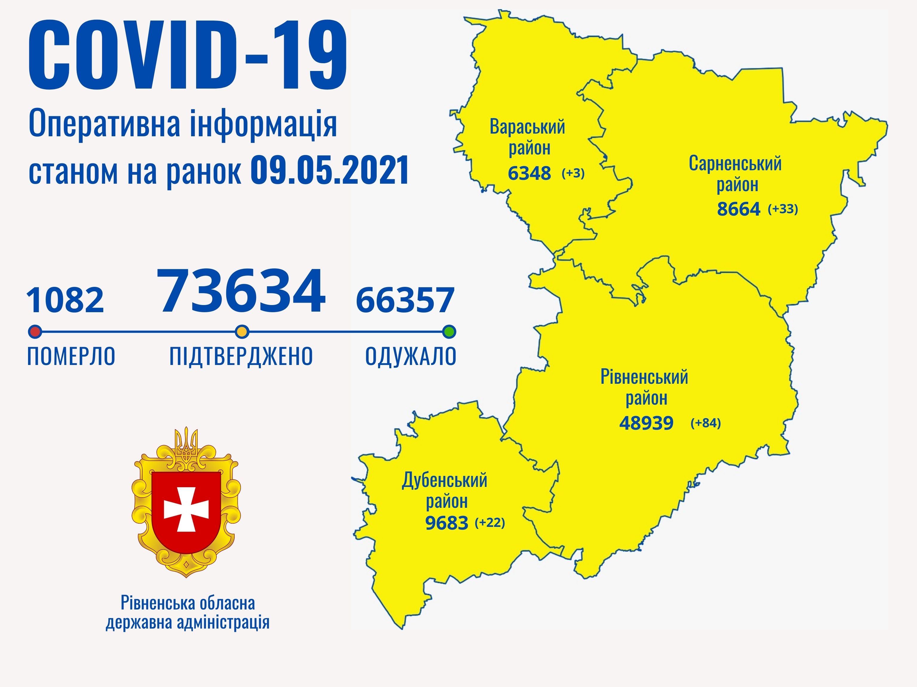 Таким чином в Рівненській області наразі маємо 73634 випадки захворювання на коронавірусну хворобу.