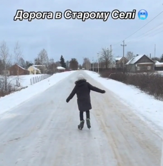 Зокрема, дорогу у Старому Селі настільки вкрило ожеледицею, що місцеві діти катаються на ній, наче на ковзанці.