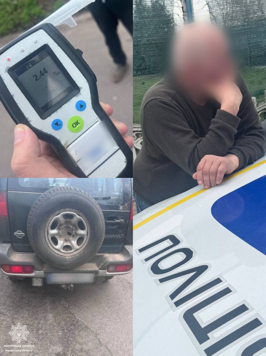 – Після зупинки 54-річний водій тривалий час відмовлявся надавати свої документи. Під час перевірки інспектори з’ясували, що керманич позбавлений права керування. Також поліцейські помітили у водія ознаки алкогольного сп’яніння та запропонували пройти огляд на визначення стану сп’яніння на місці події за допомогою алкотестера, на що водій погодився. Результат огляду позитивний — 2, 44 проміле, що більше ніж у 12 разів перевищує допустиму норму, – розповіли у патрульній поліції Рівненщини.