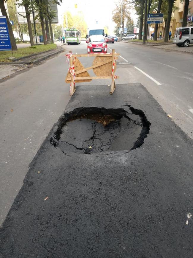 Коли нам повідомили про цю проблему, ми одразу викликали аварійну бригаду водоканалу, яка ліквідувала порив, а ми заново заасфальтували проблемне місце. Поки нового просідання асфальту не видно. Подібна ситуація на цій вулиці була на початку року. Тоді просідання відбулося неподалік станції переливання крові. У минулому році схожа аварійна ситуація була на вулиці Відінській, але там труба була у такому стані, що відремонтувати її неможливо, тож її просто «заглушили». До цього подібне трапилося на вулиці 24 Серпня.