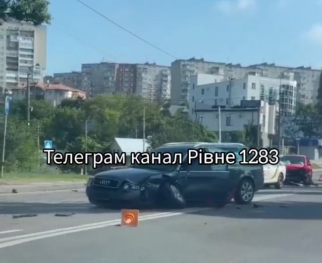 Сьогодні вранці на вулиці Шухевича не розминулися два легковики. Судячи з невеликого відео, яке оприлюднили користувачі телеграм-каналу Рівне 1283, обидва авто добряче “поцілувалися”.