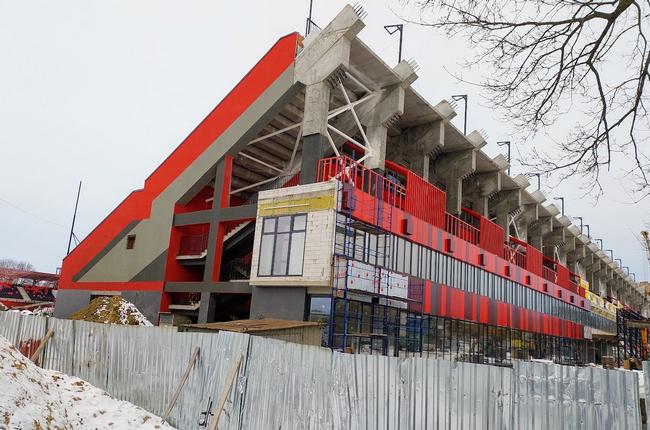 Біля стадіону уже залили фундамент для зведення котельні, що обігріватиме стадіон, змонтовано самі котли, завезено технологічне обладнання та триває монтаж металоконструкцій і прокладання теплотраси до західної трибуни.