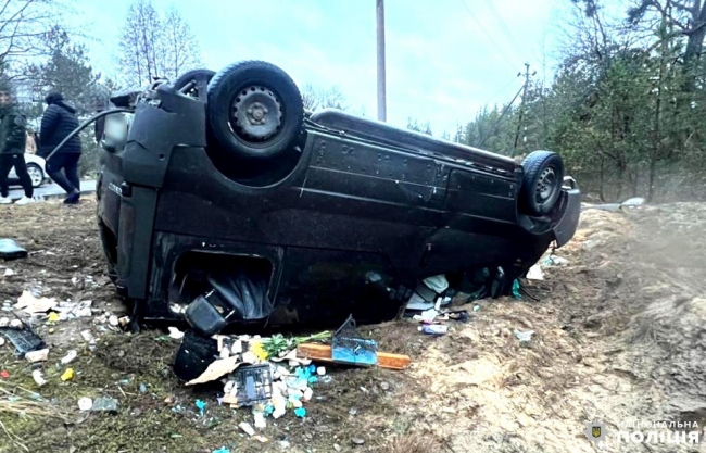 Від удару автомобілі злетіли в кювет, а мікроавтобус перекинувся.