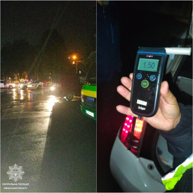 – Під час спілкування з водієм атрульні виявили ознаки алкогольного сп’яніння. “Драгер” на місці зупинки показав 1,50 проміле, – повідомила патрульна поліція Рівненщини.