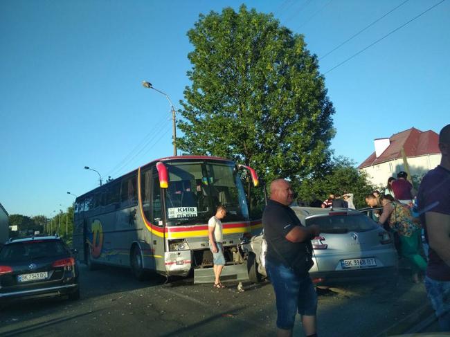 Як повідомляє депутат Рівненської обласної ради Олександр Гомон, автобус «Київ – Львів» з пасажирами зіткнувася із «Renault».