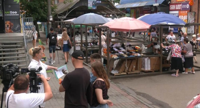 Тепер зміни чекають на ще одну коротеньку вулицю біля ринку — Базарну, яка впирається у підземний перехід попід Соборною. Ту саму, де роками торгують дешевим взуттям, шкарпетками, м’якими іграшками та іншим крамом — тепер уже у великих незграбних кіосках, на які нарікають і покупці, і мешканці сусідніх будинків.