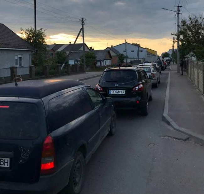 Задовго до цього часу до тієї АЗС вишикувалась колона охочих купити пальне. Автомобілів було десь понад 40. Втім, пального вони у той вечір не придбали. Усі плани чиновників та водіїв зруйнувала повітряна тривога, яку оголосили на Рівненщині,як і у решти областях України, о 20:39 , а відбій пролунав майже через дві години – лише о 22:39.