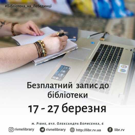 Також можна скористатися послугою електронної реєстрації за посиланням: https://libr.rv.ua/articles/63#gsc.tab=0
