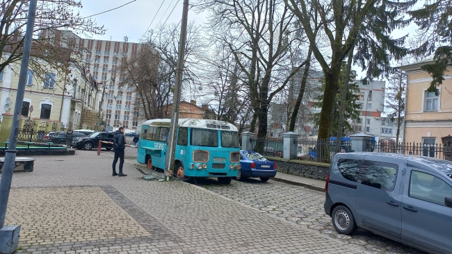 Власник “The bus” біля краєзнавчого музею пан Володимир вважає, що міська влада діє неправомірно, і викликав на місце поліцію.