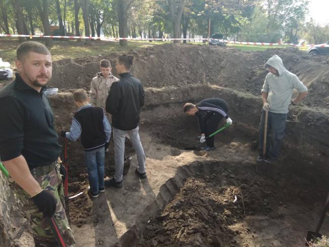 Яму почали копати вчора, 1 жовтня, а сьогодні продовжують. Рухаються вглиб, поки не досягнуть суглинку. Розкопки проводять студенти РДГУ, для яких це – практика. Керує ними археолог Олексій Войтюк.
