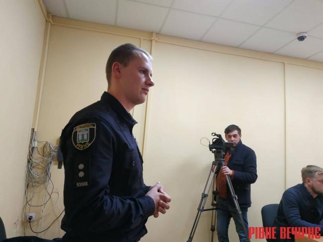 – Під час несення служби ми в радіоефірі отримали орієнтування від інших екіпажів патрульних, що біля «Лагуни» відбулася стрілянина, є потерпілі. Коли ми прибули на місце виклику, то побачили велике скупчення людей біля осіб, яких затримали за вчинення вогнепального поранення та тих, хто вирішили зробити самосуд та ближче підходили до правоохоронців. Відповідно до статті 36 ЗУ «Про національну поліції» ми намагалися обмежити територію в доступі пересування інших громадян. Тоді я відчув два удари в обличчя, помітив, що це зробив обвинувачений, який одразу ж почав втікати. Тоді на моєму одязі були всі необхідні необхідні знаки, які вказували, що я працівник поліції. До того, як мене вдарили, до рівнян ми не застосовували жодних спецзасобів. Після удару я використав сльозогінний газ відносно обвинуваченого.