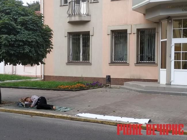 Жінка читала книжку і мало звертала увагу на перехожих. Прокурори лише з цікавістю оглядали її плакат – і мовчки заходили до приміщення.