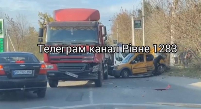 Як повідомляють у телеграм-спільноті «Рівне 1283» біля заправки «ОККО» не розминулися вантажівка й легковий автомобіль.