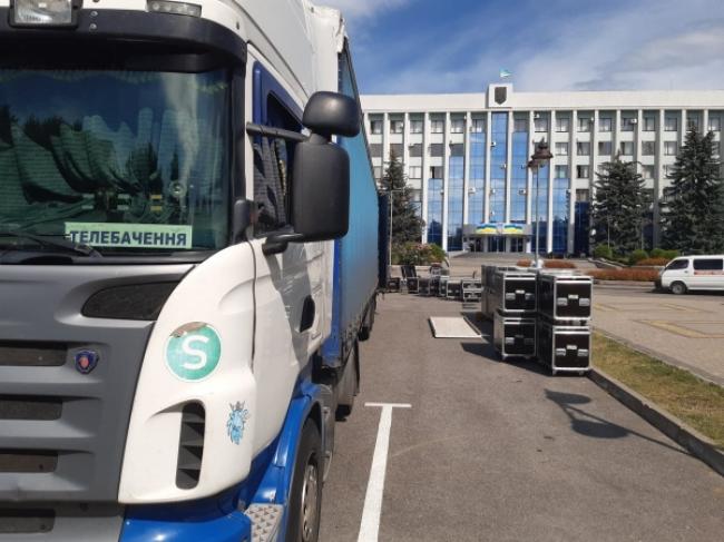Проте журналісти «РадіоТрек» поцікавилися, що це, і почули відповідь від працівників, які вивантажують коробки, що це все для підсвітки будівлі адміністрації.