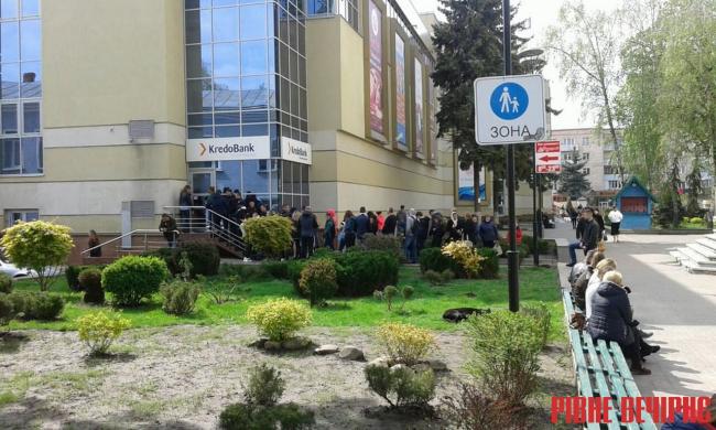 Біля відділення банку в центрі Рівного вишикувалася черга