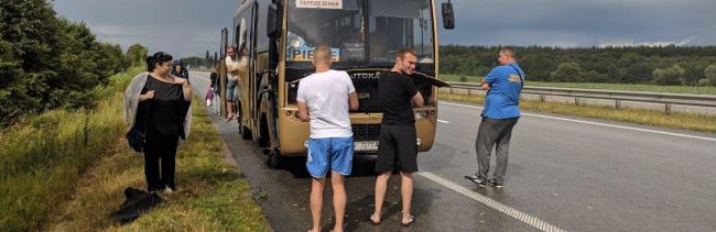 Посеред поля люди годину чекали на інший автобус. Частина пасажирів, щоб доїхати швидше, зупиняла попутний транспорт, повідомляє сайт 0362.ua.