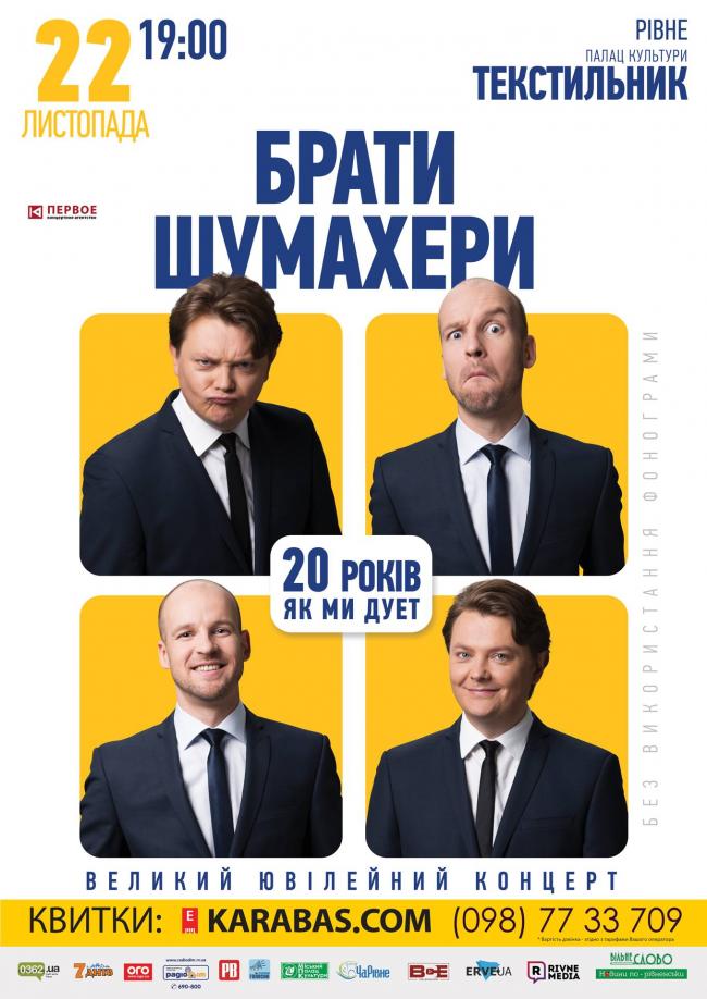 «На гостей чекає тільки відбірний, неймовірно вишуканий гумор, актуальні жарти на злободенні теми, багато музики і позитиву. Адже не даремно говорять, що талановиті люди талановиті у всьому – це і доводять “Брати Шумахери”. Вони і жартують, і співають, і пародують. А скільки у них ще нерозкритих талантів! Яких? Про це глядач і дізнається на концерті #шумастгоуон», – зазначають організатори події.