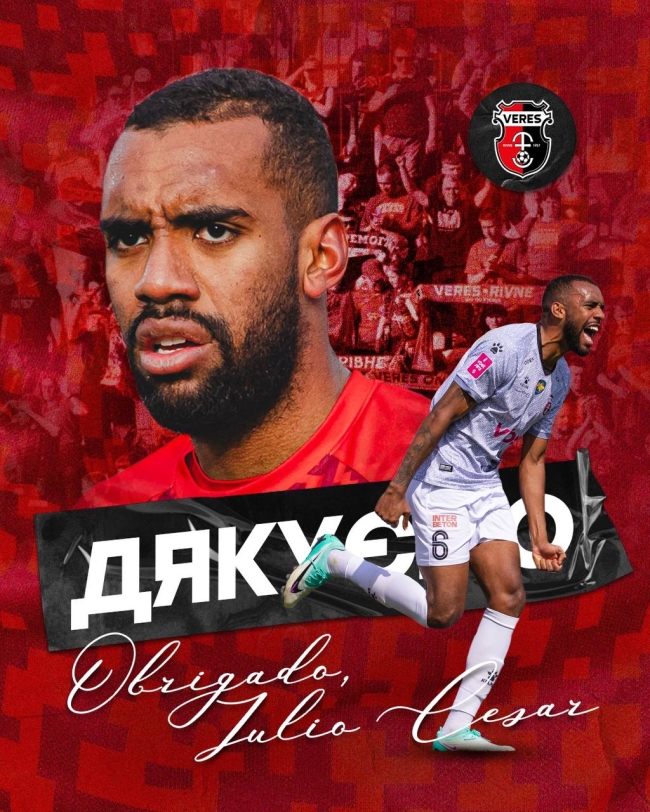 – Народний клуб Верес дякує Жуліо Сезару за гру і бажає успіхів у майбутньому! – повідомила інформаційна служба Вереса.