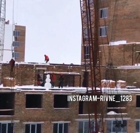 На ньому видно, як на об’єкті будівельна бригада зліпила сніговика.