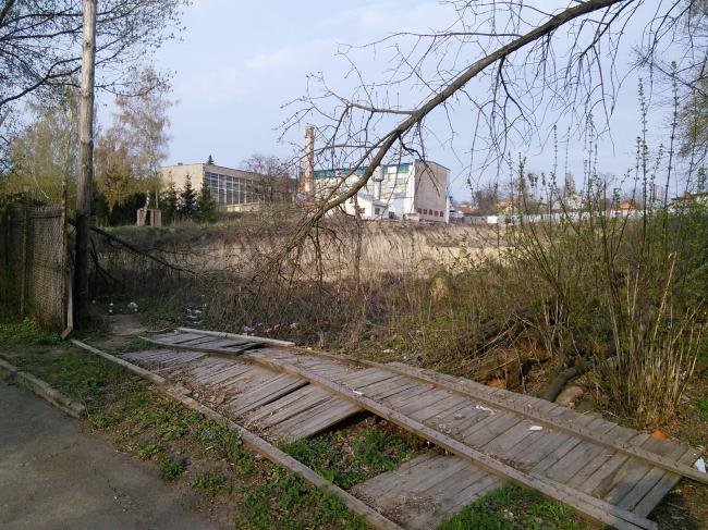 Нині майданчик закиданий сміттям і без будь-якої будівельної техніки.