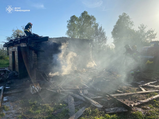 – Пожежа виникла у дерев’яній господарчій будівлі. На ліквідацію відразу було подано вогнегасні речовини. Внаслідок пожежі вогнем пошкоджено покриття та перекриття господарчої будівлі. Жертв та постраждалих немає, – розповіли у ГУ ДСНС Рівненщини.