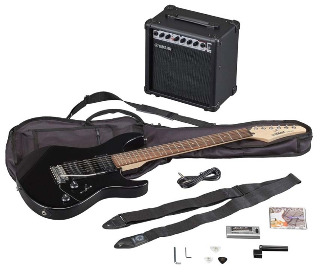 Базовий стартовий набір для електрогітари зазвичай включає саму гітару, кабель, підсилювач (комбік), тюнер, ремінь, чохол, набір медіаторів, іноді – запасні струни та засоби догляду.