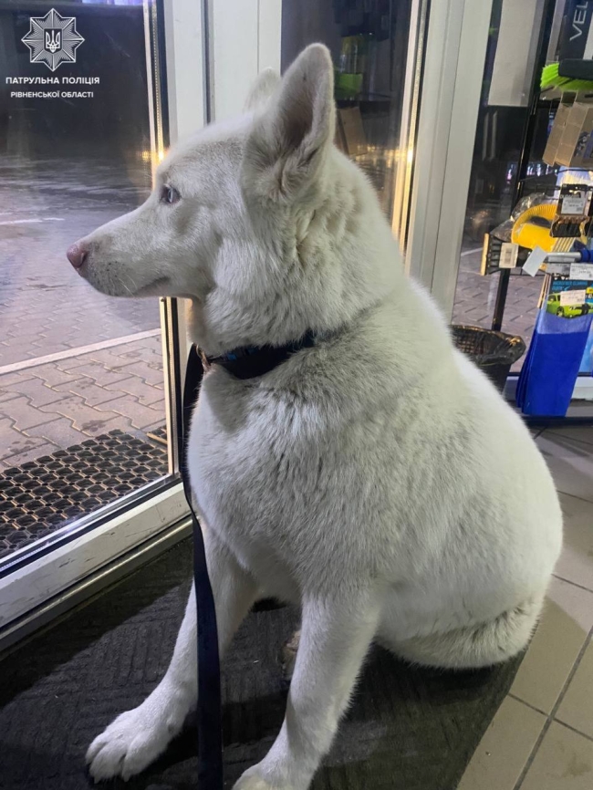 Поліцейські доставили чотирилапого на стаціонарний пост патрульної поліції у місті Сарни. Там собаку помістили у вольєр і нагодували.