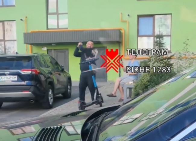 Рівняни сьогодні спостерігали дивну ситуацію на одній з вулиць міста – невідомий чоловік намагався розбити електросамокат молотком. Поруч з ним на лавці сидів інший, однак він жодним чином не перешкоджав чи то псувати, чи то випробовувати на міцність транспорт.