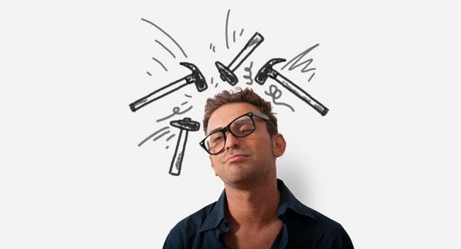 Якщо у вас відчуття, ніби голова затиснута в лещата, і біль супроводжується спазмами, а при нахилі голови вперед неприємне відчуття посилюється — це біль напруги. Поліпшити самопочуття допоможе масаж і знеболювальні ліки з вмістом аспірину.