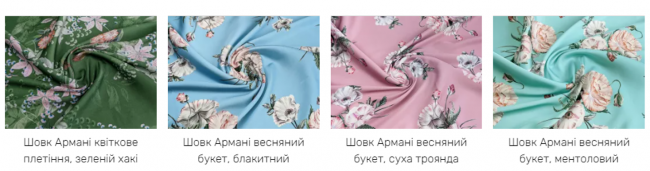 Від будь-якого руху красиво переливаються кардигани, сукні в стилі білизни, багатоярусні круїзні сарафани та спідниці. Шовк Армані легко збирати у складки, структура полотна дозволяє робити фантазійні вирізи, 3D декор, волани, коміри, банти, широкі пояси, використовувати як основу під модну сітку та мереживо.